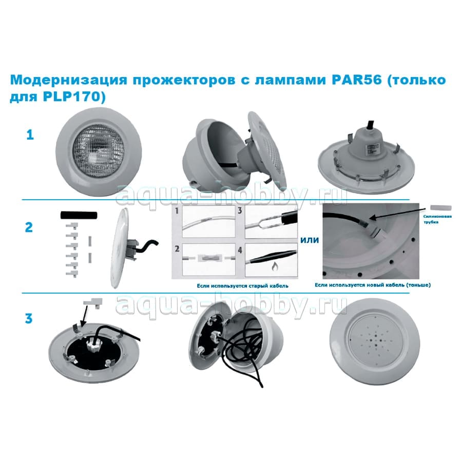 размер 170 мм полностью совместим с прожекторами / нишами PAR 56;