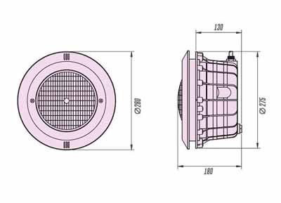 Светильники встраиваемые в бетон "Standart" 300 Вт предназначены для подводного освещения плавательных бассейнов. Область применения - установка в плавательные бассейны облицованные плиткой или пленкой. Корпус прожектора изготовлен из белого пластика стойкого к УФ излучению, используется стандартная лампа с цоколем PAR56.
