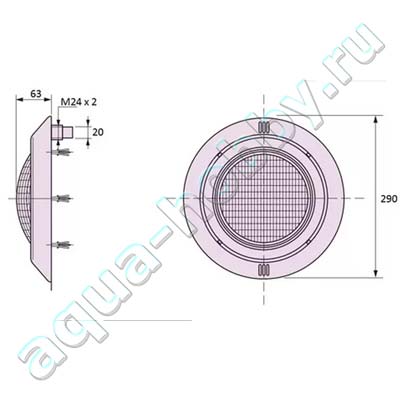Прожектор предназначен для подводного освещения плавательных карскасных и бетонных бассейнов, облицованные плёнкой или плиткой.
